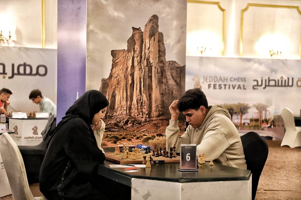 The strategic brilliance on display promises an exhilarating journey of intellect and mastery. Stay tuned as the saga of moves and countermoves unfolds!♔♕♖♗♘♙ #JeddahChessFestival #GrandMasterChallenge #ChessMastersAtWork